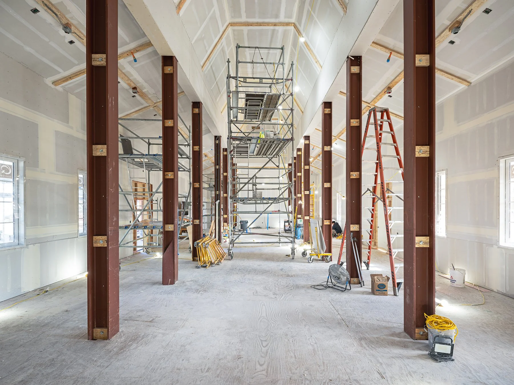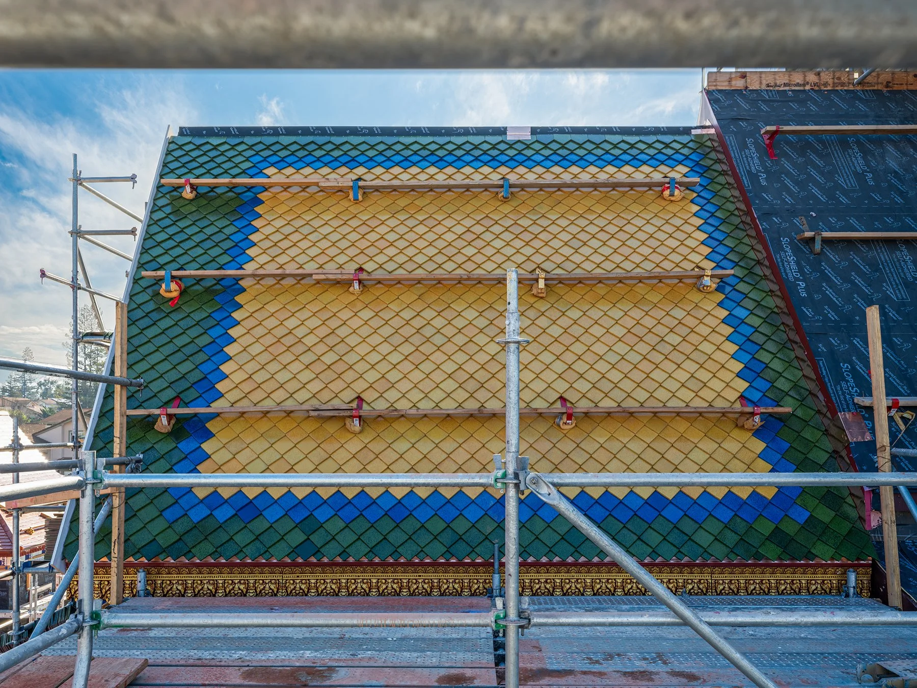 ផ្នែកគ្រឿងពណ៌ យើងបានរៀបកន្លែងមួយសម្រាប់ឲ្យក្រុមការងារតុបតែងបង្ហើយក្បាច់ចុងសំយ៉ាប (រងស្បូវ) មុននឹងលើកដំឡើង ។ គ្រឿងបំពាក់នៅចុងសំយ៉ាបបន្ទះរងស្បូវ ត្រូវតម្រៀបចេញដើម្បីឲ្យការលាបពណ៌ប្រព្រឹត្តទៅបានរលូន នឹងសមាមាត្រពណ៌មានភាពស្របគ្នាទាំងស្រុង ។