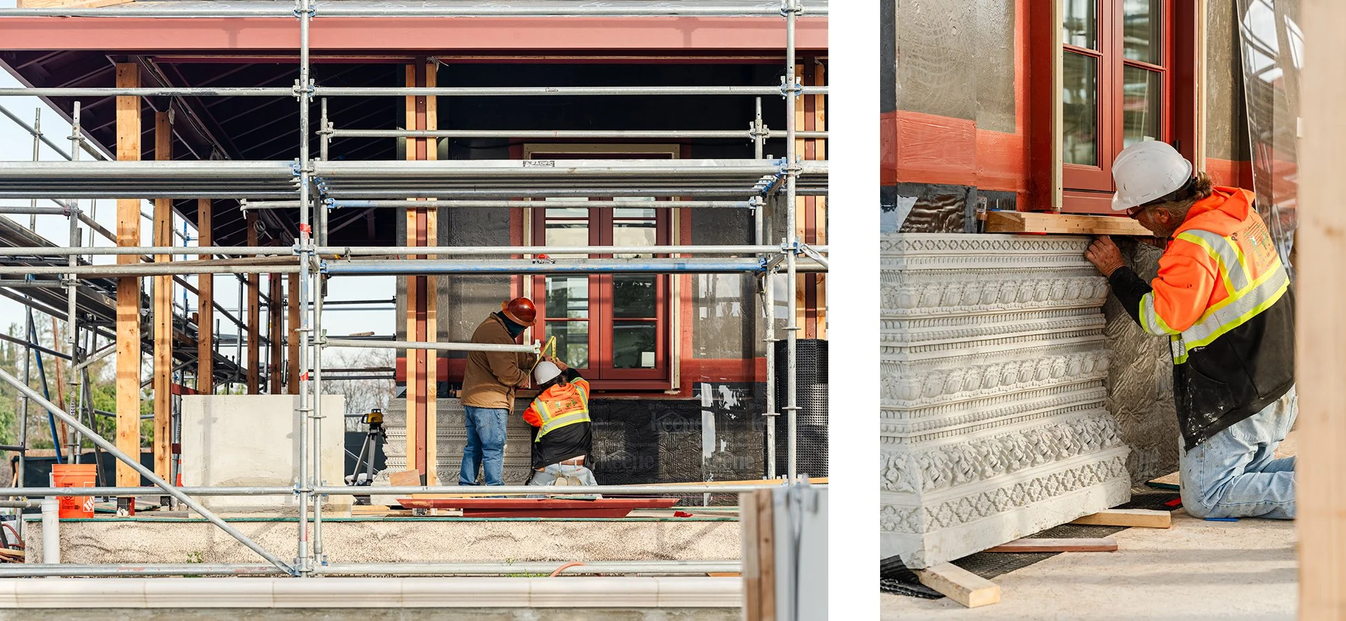 កិច្ចការនេះ ពាក់ព័ន្ធនឹងការសិក្សា ពិគ្រោះយោបល់ ការកែតម្រូវជាបន្តបន្ទាប់ ។ អ្នកជំនាញខាងតុបតែងត្រូវសិក្សាពីលំនាំសិល្បៈខ្មែរ និងបំប្លែងជាវិធីសាស្ត្រដែលអាចជួយឲ្យក្រុមការងារនៅការដ្ឋានសំណង់បានយល់ច្បាស់ ហើយធ្វើបានត្រឹមត្រូវតាមទម្រង់ដើមរបស់រចនាបថក្បាច់ខ្មែរ ។ ក្នុងដំណាក់កាលដំបូង ក្រុមការងារបានចាប់ផ្តើមដោយការសាកល្បងផ្គុំពិសោធន៍ រកបច្ចេកទេសក្នុងផ្នែកតូចសិន រួចហើយទើបពង្រីងទៅកាន់ទ្រង់ទ្រាយធំទាំងមូលតែម្តង ។